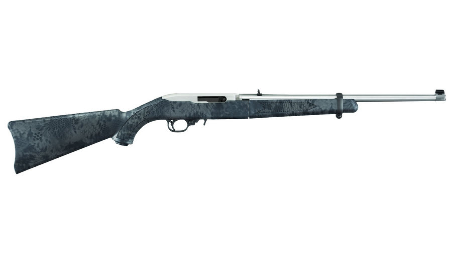 The 10/22 Takedown with Blue Kryptek Stock includes (1) 10-round detachable rotary magazine, backpack-style black carry bag with extra pockets and mag pouches, and scope mount adapters for both Weaver-style & 22 “tip-off” mounts.