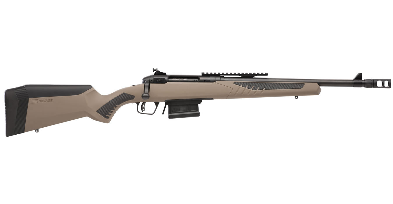 Features: AccuFit System; Flat Dark Earth Stock; Forward Mounted Rail; Adjustable Iron Sights; Magpul AICS-style Detachable Box Magazine; Soft Grip Fore-end and Pistol Grip Surfaces Brand new 110 Scout 450 Bushmaster Bolt-Action Rifle with Flat Dark Earth Stock
