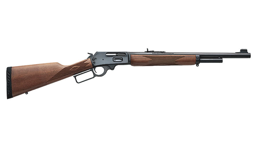 Action: Lever action; side ejection; solid top receiver; deeply blued metal surfaces; hammer block safety.