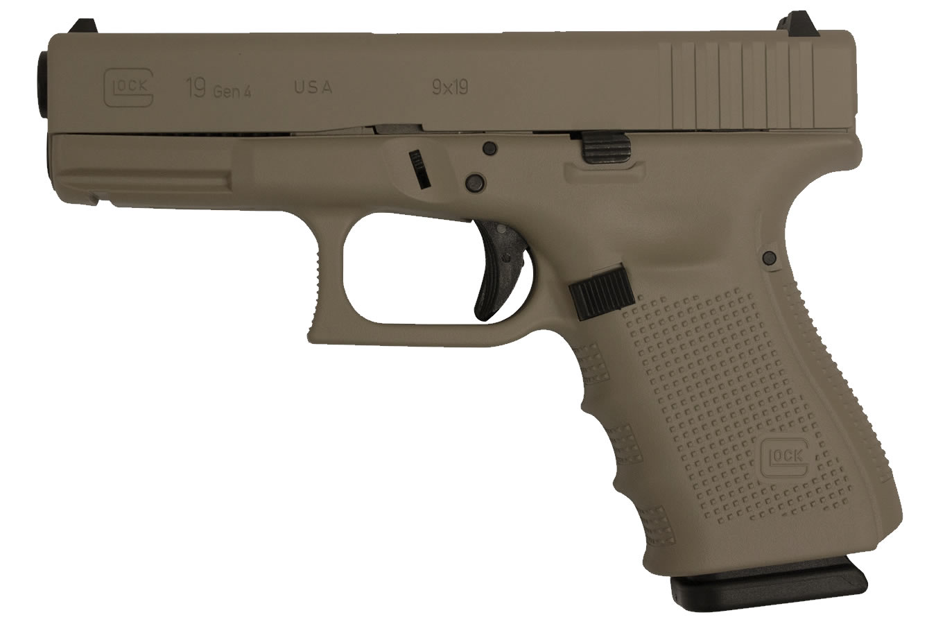 Finish: Hot Cerakote Magpul Dark Earth Brand new 19 Gen4 9mm 15-Round Pistol with Hot Cerakote Magpul Dark Earth Finish
