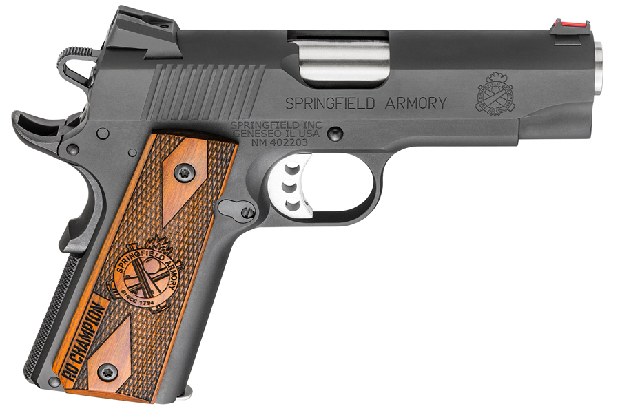 If you want a very high quality full featured 1911 that conceals better than a full-sized pistol without sacrificing capacity, the Range Officer® Champion® from Springfield Armory® offers finely tuned performance in a smaller and easier to shoot package. The RO Champion® brings the precision of a competition pistol in a shortened and lighter-recoiling configuration.