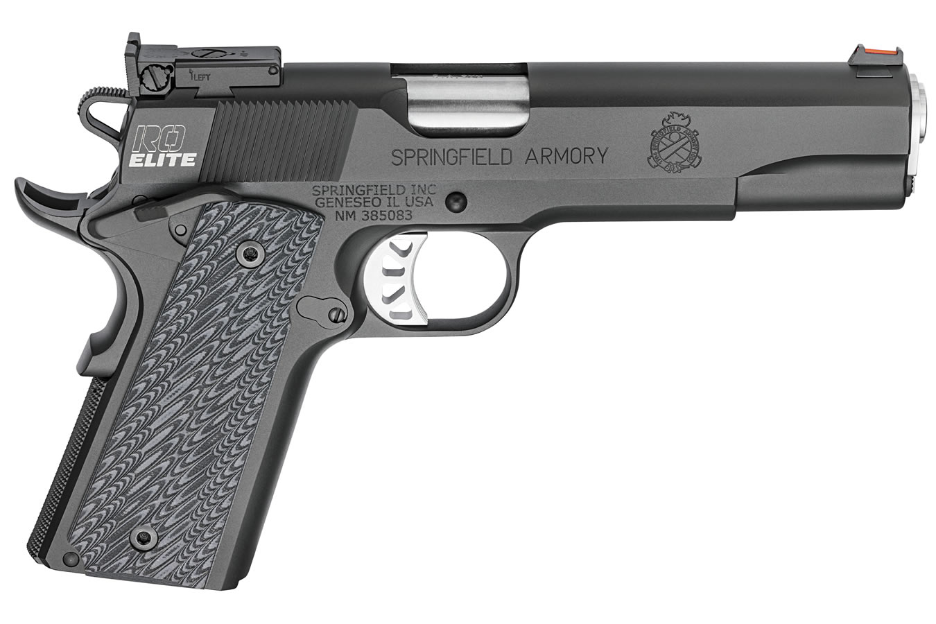 Every detail of the full-sized RO® Elite Target is engineered for accuracy. Forged steel match grade frame and slide are precision-fit for fluid-smooth function, armored with a self-lubricating Black-T® finish that shrugs off corrosion and extremes. The 5-inch stainless steel, match grade barrel, fully adjustable rear target sight, fiber optic front sight, and smooth Gen 2 trigger ensure target-drilling performance. GI recoil system, custom thin-line G-10 grips and ambidextrous safety complete a form with the fit, feel and balance to dominate the range