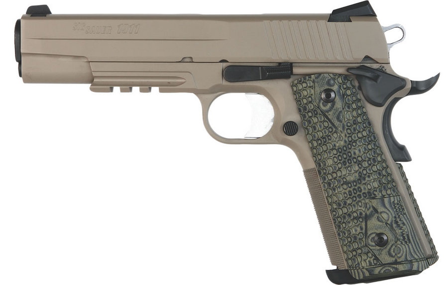 The 1911 Scorpion features Hogue’s innovative Magwell Grip Set. The advanced design combines grip plates and main spring housing in an integrated magazine well extension that promotes rapid magazine changes. Manufactured from G10 the Magwell Grips provide strength and light weight in a highly functional assembly. The grips feature Hogue’s Piranha texture for excellent retention in any environment and come in a multi-layer green and black pattern that accents the Scorpion’s Cerakote Flat Dark Earth finish.