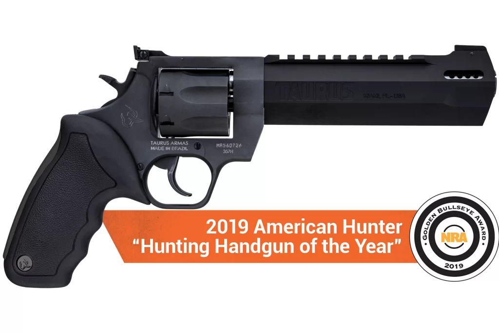 Winner of the 2019 American Hunter Handgun of the Year Golden Bullseye Award, the Taurus Raging Hunter is a next-generation, big-bore revolver that’s first in innovation-and built to last. A fun and effective alternative for short- to medium-range hunting scenarios, this 357 Magnum, seven-shot revolver is available in Matte Black or Two Tone finish. Its revolutionary angular barrel design cuts down on overall weight, while its factory tuned porting and gas expansion chamber reduces muzzle lift for quicker target acquisition. Cushioned insert grips ensure a comfortable, controllable shooting experience.