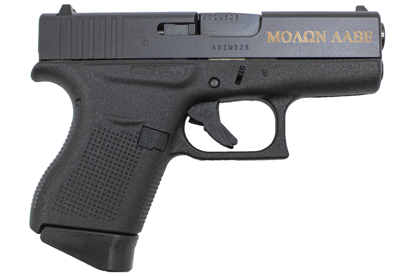 Features: Spartan Helmet / “Molon Labe” Bronze Engraving on Slide Brand new 43 9mm with Spartan Helmet and Molon Labe Bronze Engraving