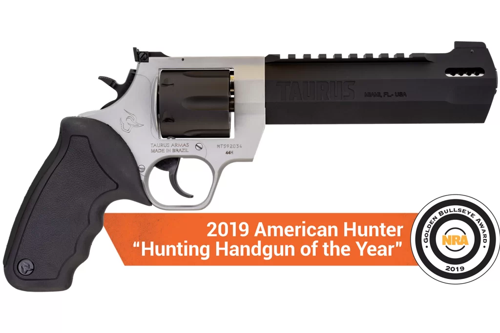 Winner of the 2019 American Hunter Handgun of the Year Golden Bullseye Award, the Taurus Raging Hunter is a next-generation, big-bore revolver that’s first in innovation-and built to last. A fun and effective alternative for short- to medium-range hunting scenarios, this 44 Magnum, six-shot revolver is available in Matte Black or Two Tone finish. Its revolutionary angular barrel design cuts down on overall weight, while its factory tuned porting and gas expansion chamber reduces muzzle lift for quicker target acquisition. Cushioned insert grips ensure a comfortable, controllable shooting experience.