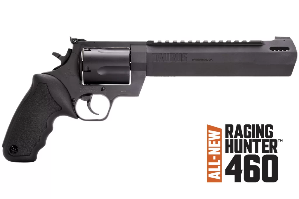 Winner of the 2019 American Hunter Handgun of the Year Golden Bullseye Award, the Taurus Raging Hunter is a next-generation, big-bore revolver that’s first in innovation-and built to last. A fun and effective alternative for short- to medium-range hunting scenarios, this five-shot revolver is chambered in 460 S&W Magnum and is available in Matte Black or Two Tone finish. Its revolutionary angular barrel design cuts down on overall weight, while its factory tuned porting and gas expansion chamber reduces muzzle lift for quicker target acquisition. Cushioned insert grips ensure a comfortable, controllable shooting experience.