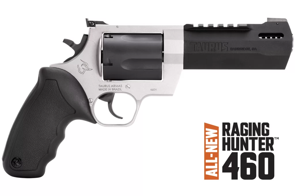 Winner of the 2019 American Hunter Handgun of the Year Golden Bullseye Award, the Taurus Raging Hunter is a next-generation, big-bore revolver that’s first in innovation-and built to last. A fun and effective alternative for short- to medium-range hunting scenarios, this five-shot revolver is chambered in 460 S&W Magnum and is available in Matte Black or Two Tone finish. Its revolutionary angular barrel design cuts down on overall weight, while its factory tuned porting and gas expansion chamber reduces muzzle lift for quicker target acquisition. Cushioned insert grips ensure a comfortable, controllable shooting experience.