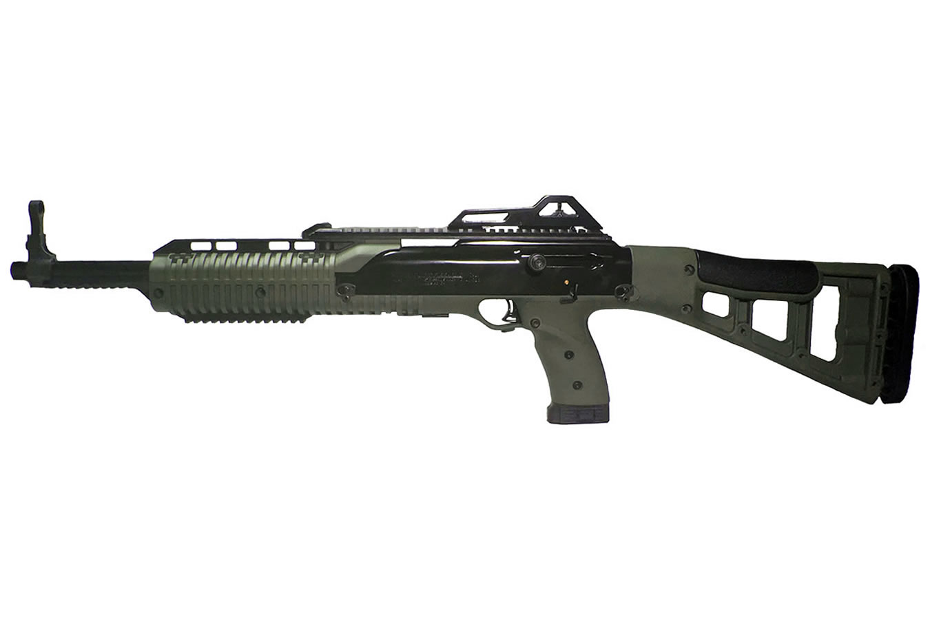 This Hi-Point 995 9mm Carbine comes equipped with an OD Green (Olive Drab) skeletonized stock.
