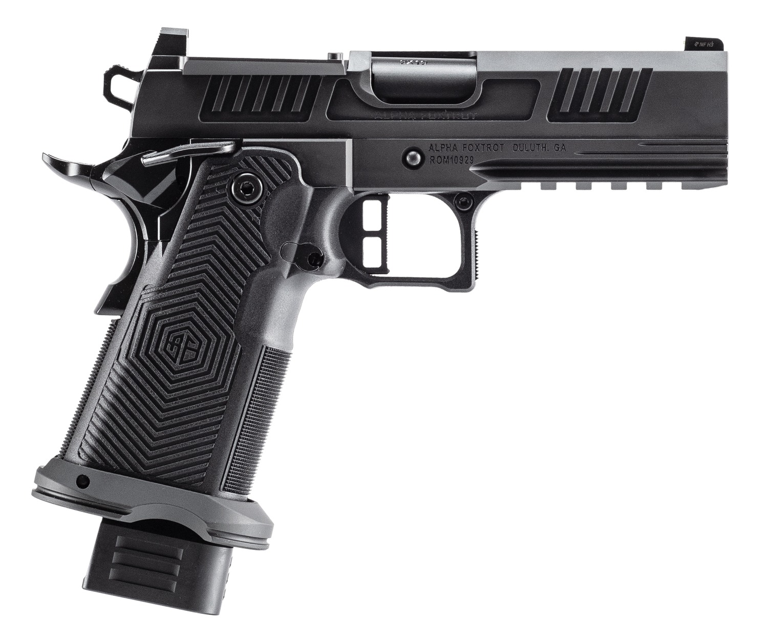 The AF AA39X1CID-XDBK19 AF1911-Romulus 4.25 STD brings Alpha Foxtrot’s modern 2011-style engineering into a full-size package built for accuracy, reliability, and family-range confidence. With a polished black DLC finish, bull barrel, and optics-ready slide, this handgun is ready for target practice, home defense, or competition right out of the box.