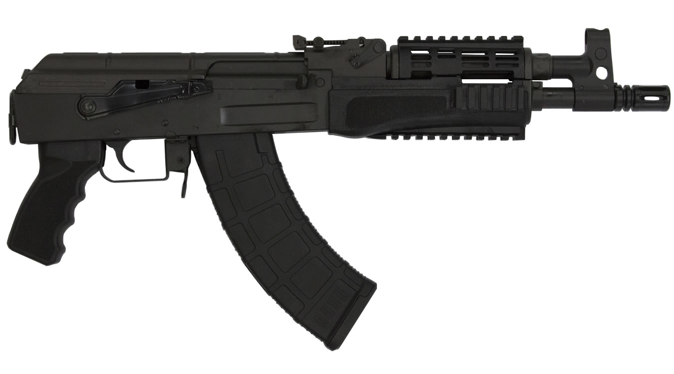 The C39 Pistol is 100% made in the good old U.S.A.! The new bird cage muzzle brake gives the small package a sexy new look. An ergonomic pistol grip, high-tech poly furniture, and the proprietary quad rail gives an incredibly cool appearance that just oozes strength, quality and style. Other features include machined from 4140 ordnance quality steel, integrated gas block and front sight, M16 style birdcage compensator and a front and rear sling mount. Perfect for home protection, or a fun day of inexpensive shooting at the range, the C39 pistol is a trusty tool that is ready when you are.