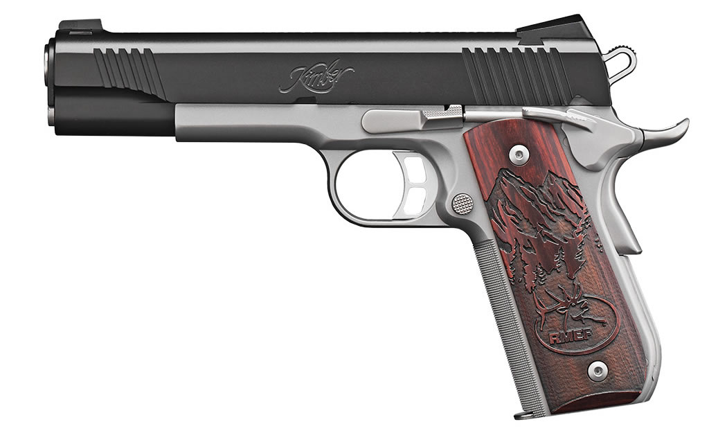 Trigger Factory Setting: 4-5 lbs. Brand new Camp Guard 10 RMEF 10mm 1911 with Rosewood Grips