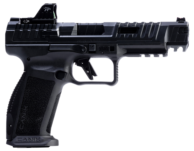This model inlcudes the MeCanik MO1 Red Dot. The Canik SFx Rival has a total length of 8.1, a height of 5.7, a 1.41 width, a 5 barrel, and an overall weight of 29.5 oz. With these specifications the Canik SFx Rival can compete in IDPA, IPSC, and USPSA without restrictions. With adjustable fiber optic sights, a lightened 90 diamond cut aluminum flat trigger, reversible magazine releases and sizes, ambidextrous slide release, aggressively serrated and ported slide, 1913 Picatinny rail, external mag-well, 3 grip back strap sizes, double undercut trigger guard, ergonomically redesigned beavertail, aggressive grip texturing, and a completely modular setup, the SFx Rival is ready to win right out of the box!