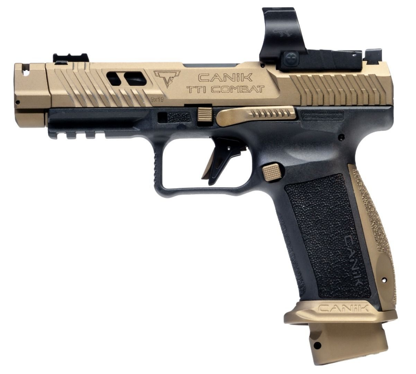 Developed in conjunction with Taran Tactical Innovations, the TTI Combat is a high-performance pistol designed to the specifications of world champion Taran Butler. The pistol features an aggressive grip texturing along with a flared magwell to help maintain a solid grip and execute fast reloads under high pressure. The pistol also features a ported and spiral-fluted barrel that is paired with CANiK’s new compensator for extremely low recoil to allow for fast follow-up shots. Lastly, the pistol comes equipped with fiber optic sights and an optics-ready slide designed for direct mounting of CANiK’s MECANiK optics or a Trijicon SRO.