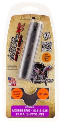 The Carlsons Long Beard Turkey delivers strength and reliability in a durable design. This 12 GA choke tube features a ported style, a .683 diameter, and 17-4 stainless steel material. Get the best choke tubes for sale online from GrabAGun today!Long Beard Turkey Features Carlson’s Long Beard Turkey Choke has been specially designed to produce the best patterns when shooting Winchesters Long Beard Turkey loads. This ammunition features Shot-Lok Technology that allows for the tightest patterns and longer downrange reach over any lead turkey load on the market. Pair this ammunition’s capabilities with the new Carlson’s Long Beard Turkey Choke and you have a devastating, gobbler-killing combination. This tom-dropping dynamic duo serves-up 10% greater penetration over standard lead shot at distances of more than 50 yards, terminal on-target performance and allows nearly perfectly round shot to be thrown from the barrel for extremely tight, long-range patterns. *Note- No steel shot larger than #4 may be used in our Turkey Choke Tubes. Long Beard Turkey Specifications Brand: Carlson’s Choke Tubes Category: Choke Tubes Gauge: 12 Gauge Model: Long Beard Turkey Color: Blued Material: 17-4 Stainless Steel Constriction Diameter: .683 Constriction Type: Turkey Style: Ported Chokes Included: 1 Configuration: Mossberg 935