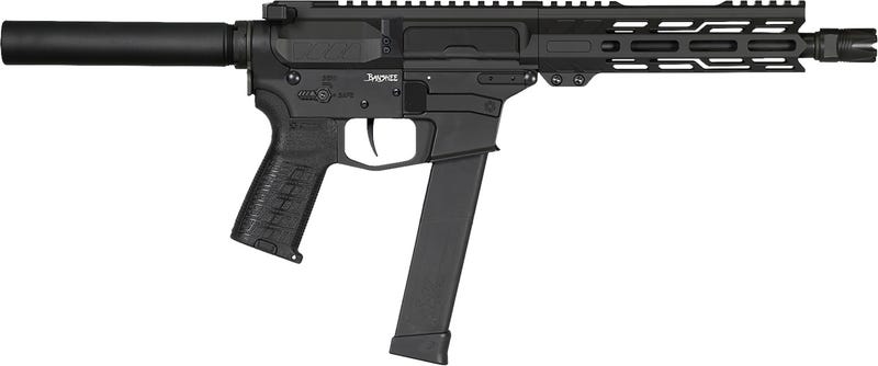 The CMMG Banshee MK10 operates on a blowback system, ensuring consistent performance and reliability. The pistol’s 8″ barrel is made from chrome moly steel with a black nitride finish, providing durability and corrosion resistance. The medium taper threaded barrel with a .578″x28 thread pattern includes a CMMG Zeroed Linear Compensator, enhancing control and reducing muzzle rise.