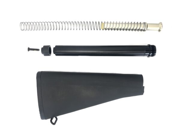 This Chester County Armory listing is for an original, Colt factory production M16A2 fixed rifle surplus stock kit, complete with original Colt buffer tube, rifle buffer, and spring.