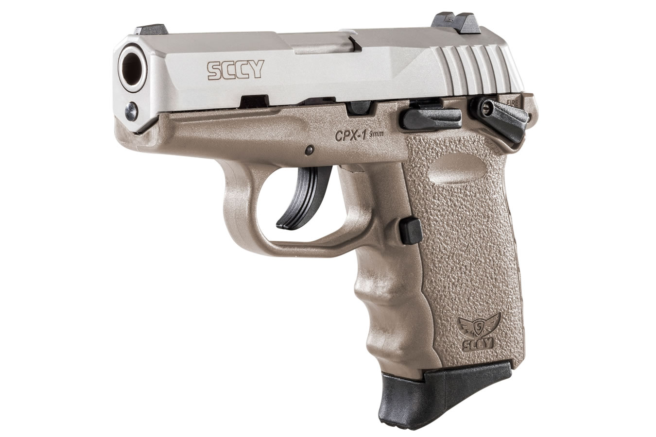 Features Manual Safety Brand new CPX-1 9mm Pistol with Flat Dark Earth Frame and Stainless Steel Slide
