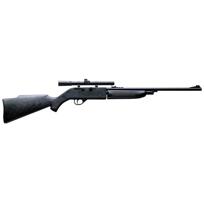 POWERMASTER 66 Short-stroke, high compression variable pump BB & pellet rifle Reservoir holds up to 200 BBs or use the 5-shot clip for pellets Kit includes 4x scope, shooting glasses, 100 BBs, 100 pellets & paper targets Shoots .177 pellets/BBs