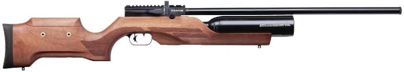 The Craftsman Collection, from the iconic Benjamin brand, presents the Kratos PCP-powered air rifle. Featuring a handsome, crafted Turkish walnut stock with an adjustable cheek piece, adjustable trigger shoe, 12-shot rotary magazine, and rifled steel, threaded barrel for sound suppression. The Kratos comes with a side cocking lever, power adjuster knob, and Picatinny mounting rail for your accessories. With up to 60 shots per fill at 3000 psi, the Kratos delivers .22-caliber pellets up to 1000 fps and 32 fpe. Hunting never looked so good.