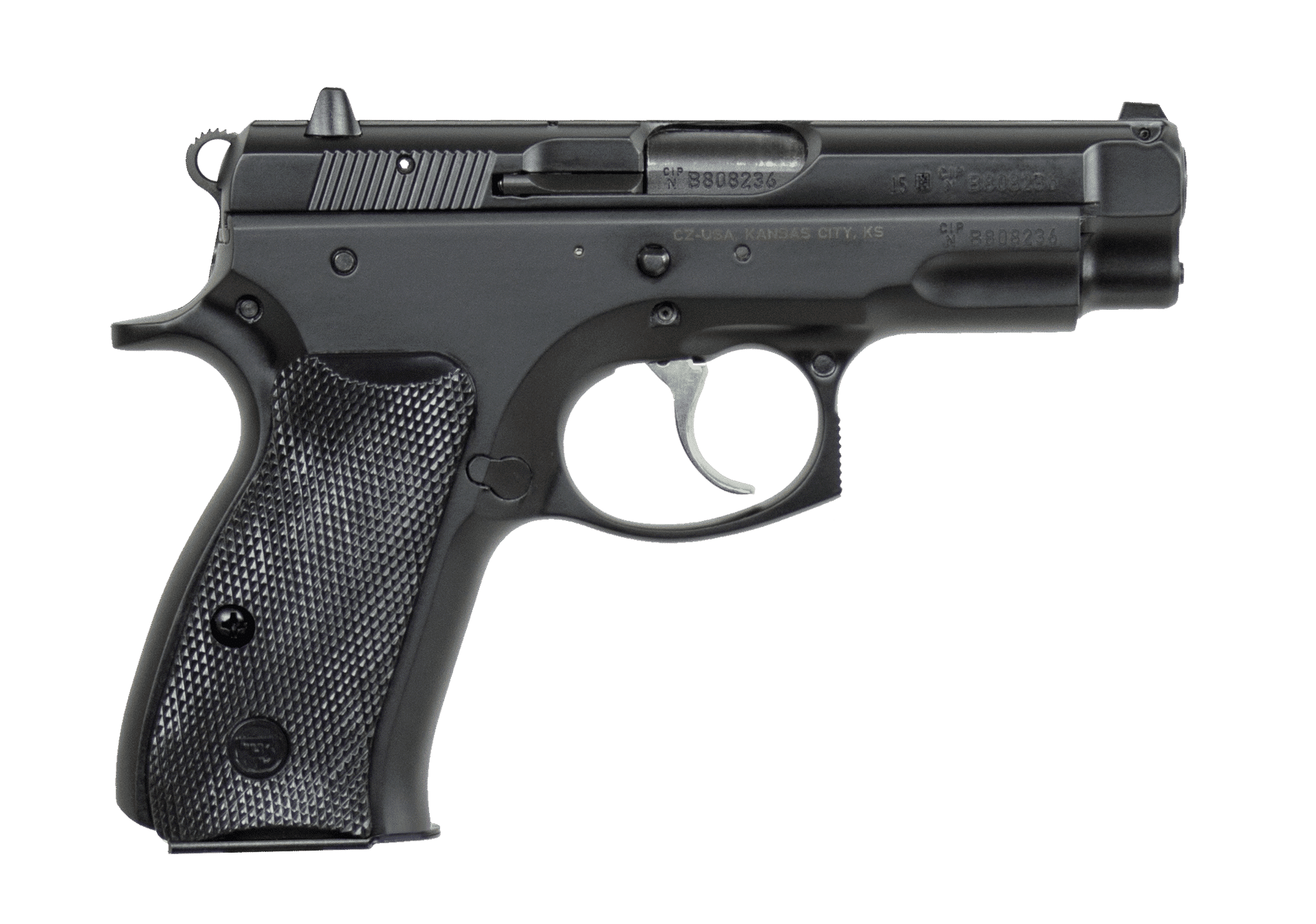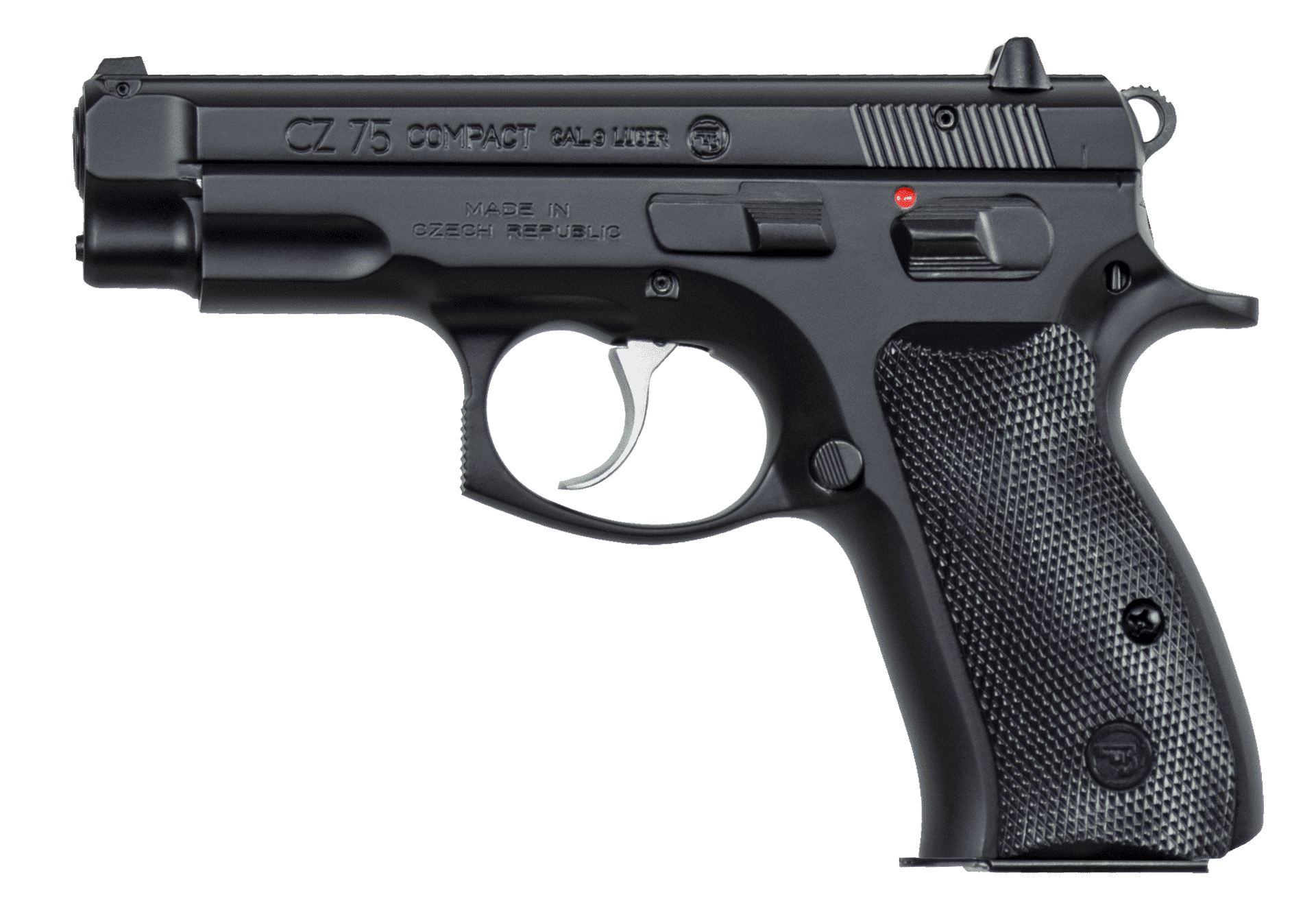 At 5″ tall with a barrel length of just under 4″, the Compact model shaves a little more than 3/4″ off the length and about 1/2″ off the height of the full-size CZ 75. Its reduced size allows it to readily disappear under regular clothing. The CZ 75 DA/SA action with a manual safety lever provides the user with two options for carry: hammer-back with the safety on for single action operation or manually decocked for a double action first shot with no need to remember to take off the safety before firing. Because the 75 Compact retains the steel frame of the original 75, only 2.4 oz of weight is lost, making it the softest-shooting compact in the CZ 75 line.