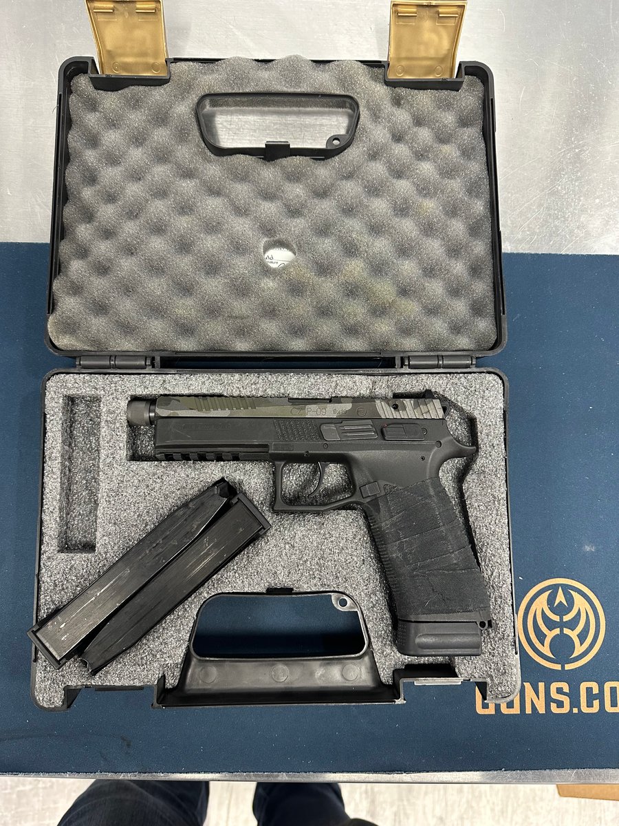 Comes with hard case, threaded barrel, 3-19rd Mags.