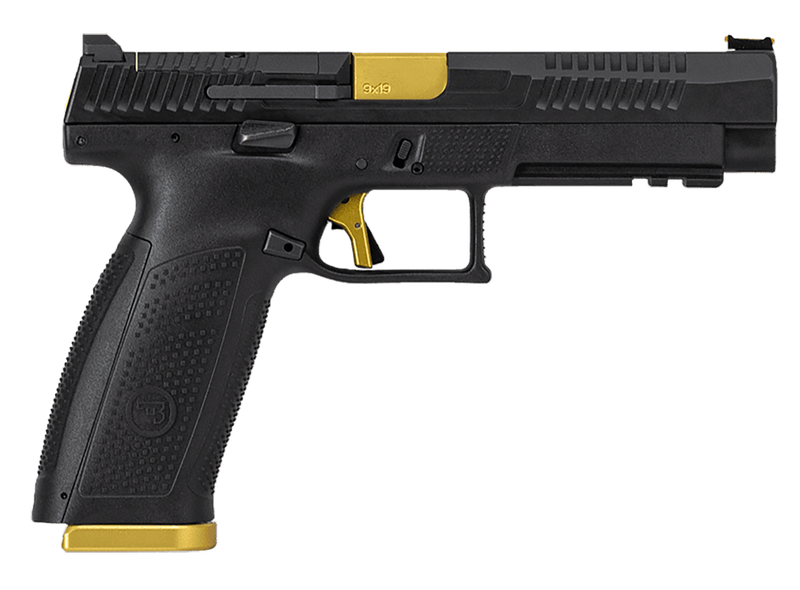 While many of CZ’s tactical handguns were born of competition guns, the new CZ P-10 F Competition-Ready pistol followed the opposite trajectory. The new P-10 F Competition-Ready utilizes the full-size P-10 F frame and has a barrel and slide that are a half-inch longer, providing a longer sight radius for the included fiber optic front sight and fixed serrated rear sight. Additionally, like other P-10 models, the slide is milled to accept mounting plates for the most popular micro red-dot optics on the market. The pistol is outfitted with an Apex Tactical extended magazine catch, extended slide stop, back slide cover along with a HB Industries trigger for increased performance. Since every competition gun needs a little flash, gold accents on the barrel slide cover and on the trigger and three magazines equipped with aluminum Henning Group bases make this handgun stand out in the P-10 line and on the firing line.