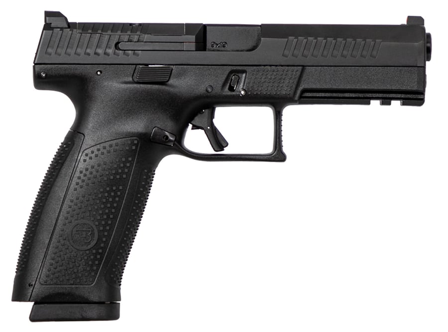 CZs P-10 Optics Ready pistol features a grip angle which avoids that brick-in-the-hand feeling that has plagued many in the striker-fired genre allowing it to point naturally. A mild palm swell deep beavertail and three interchangeable backstraps make the P-10 fit a wide variety of hands as if it were built for them. Its trigger is designed to minimize creep and stacking and rebounds with a short positive reset meaning single shots can be meticulously placed while follow-ups are effortless. The fiber-reinforced polymer frame and hardy nitride finish are made for the daily grind. A generous trigger guard allows use with gloved hands while being undercut to allow as high a grip as possible. Features an ambidextrous slide release and swappable mag release. This new reversible release just requires a few minutes to swap allowing the pistol to remain lefty-friendly. Optics Ready version (optic plates for Trijicon RMR and Leupold DeltaPoint Pro available).