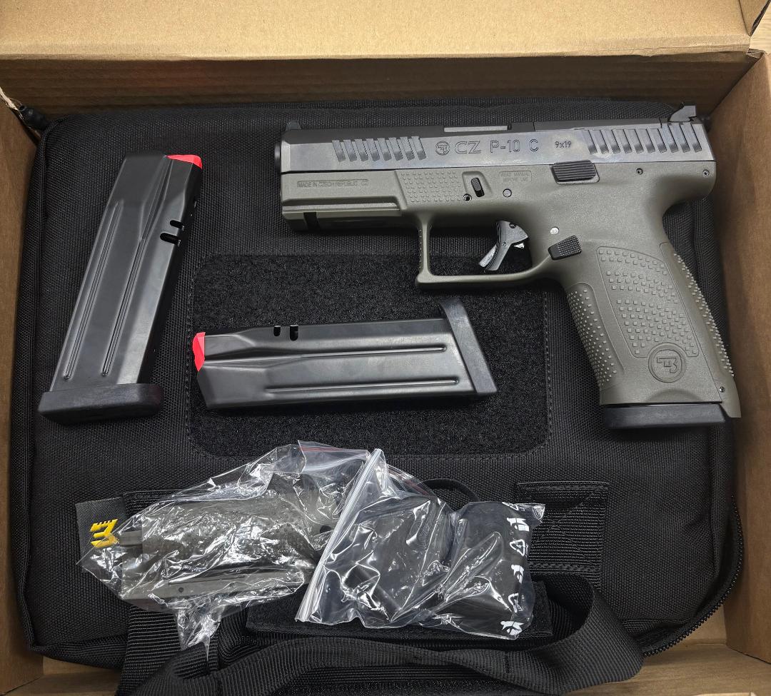 The CZ P-10C is a high-quality semi-automatic handgun known for its reliability and accuracy. It features a barrel length of 4 inches and is chambered in 9MM Luger (9×19 PARA). The gun has a capacity of 15 rounds, making it ideal for personal protection and target shooting. The finish of the CZ P-10C is a sleek combination of black and OD green, giving it a modern and stylish look. The barrel length ranges from 4.0 to 4.9 inches, providing optimal performance and control.