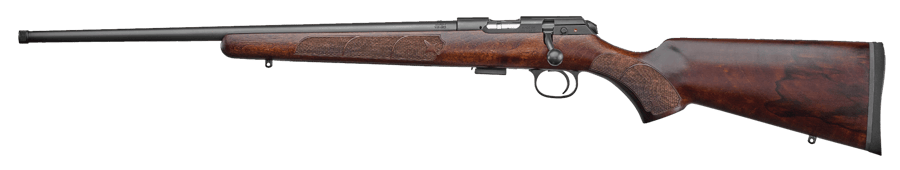 CZ-USA 02391 CZ 457 American .22 WMR Caliber with 5+1 Capacity, 24″ Barrel, Black Nitride Metal Finish & Fixed American-Style Turkish Walnut Stock. Left Hand.