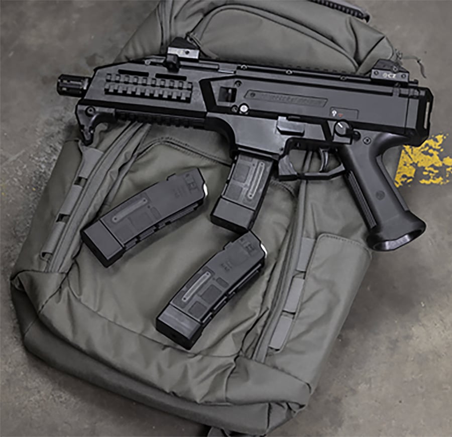 This CZ Scorpion sub-gun is a blowback-operated semi-auto in 9mm with a 7.72″ cold hammer-forged barrel. Its muzzle features 1/2×28 threads hidden underneath the factory flash hider, meaning users can fit either 1/2×28 or 18×1 accessories to the muzzle. Equipped with low-profile sights, its rear sight has four different aperture sizes for everything from close quarters to way out there. The sights ride on an 11″ Picatinny rail perfect for mounting optics. It has a polymer frame with a QD sling swivel pocket integrated into the rear sling attachment point. Simple and reliable, the Scorpion not only has ambidextrous controls, its non-reciprocating charging handle is swappable and trigger reach is adjustable. This black model has a 20-round magazine.