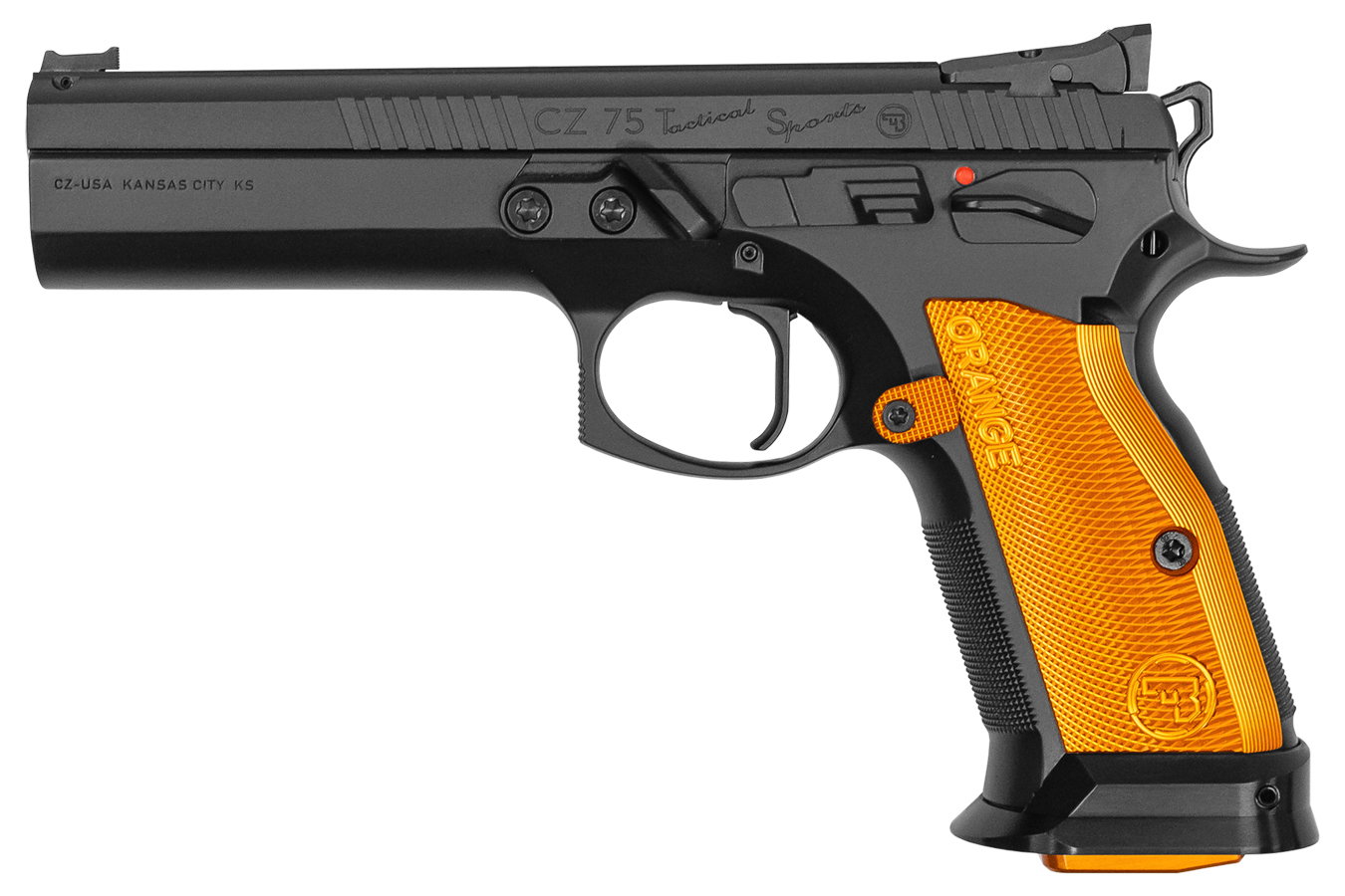 Safety: Ambidextrous Manual Safety Safety Stop on Hammer Brand new CZ75 Tactical Sports 9mm Pistol with Aluminum Orange Grips