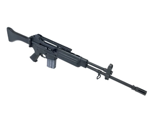 This particular model K2 was imported by Stoeger Industries in Hackensack, NJ as as semi-automatic version, and then converted to a select-fire machine gun. It is identified on its current ATF Form 3 as having been manufactured as a “Form 2 Registration.” . It features its original factory side-folding stock, open rifle sights with a picatinny-style optics rail, and an 18.3″ length rifle barrel.