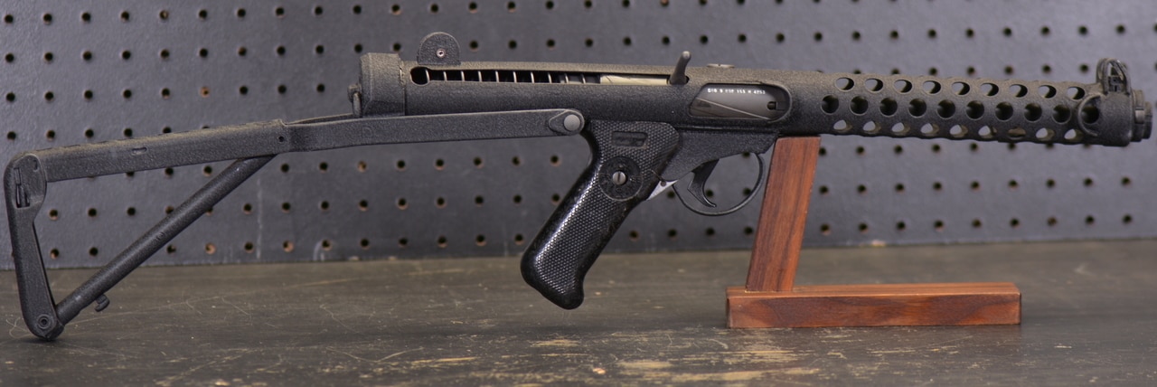 This started life as a sten tube and was sent over to Don’s Gun Shop for a conversion into a Sterling SMG. The Sterling is one of the most softest shooting machine guns out there! Here is some history on the gun: