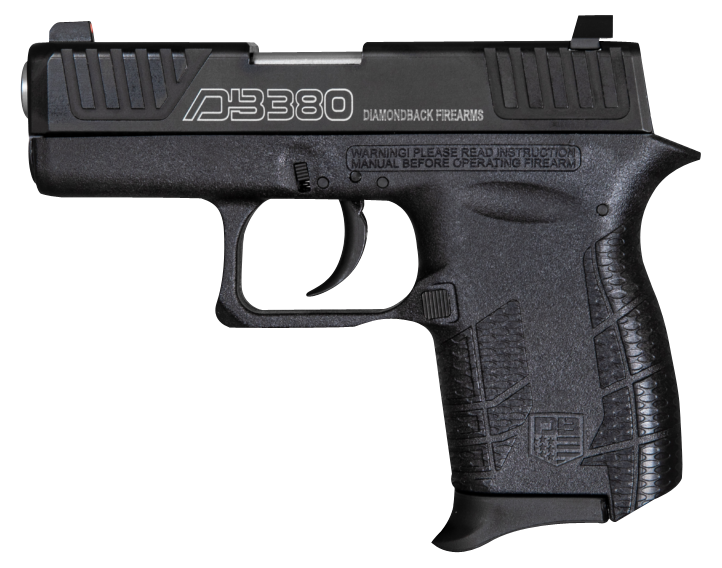 Diamondback Firearms is proud to present the DB380. A micro-compact .380 automatic pistol made entirely in the USA. Designed with safety in mind, the DB380 features a ”ZERO-Energy” striker firing system with a mechanical firing pin block, a steel magazine catch to secure a sheet metal magazine and real windage-adjustable sights, all in a lightweight pistol.