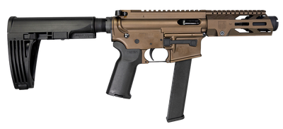 The Diamondback DB9R pistol delivers high performance, reliability, and accuracy. It comes chambered in 9mm with a 4 inch barrel. Features include a gearhead works tailhook Mod2 brace, a 6 inch M-LOK handguard, a midnight bronze finish, and a 32 round magazine. Get the best tactical semi-automatic handguns for sale online from GrabAGun today!DB9R Features Diamondback Firearms are made entirely in the USA! Starting with the tried-and-true, U.S. Military-proven gas-impingement system and using only the highest quality components machined in Diamondbacks CNC facility. The DB9R raises the bar when it comes to features and performance when compared to others. It is compatible with Glock magazines. DB9R Specifications Brand: Diamondback Category: Tactical Pistols Gun Platform: AR-Style Caliber: 9mm Luger Model: DB9R Brace Finish: Black Action: Semi-Auto Barrel Length Range: 4″ to 4.99″ Sights: None, Optic Ready Capacity: 32+1 Grips: Black Magpul MOE K2+ Hand: Right Handguards: 6″ M-LOK Max Capacity: 32 Receiver Finish: Midnight Bronze Cerakote Receiver Material: 7075-T6 Aluminum Brace Description: Gearhead Works Tailhook Mod2 Brace Brace Material: Synthetic Barrel Length: 4″
