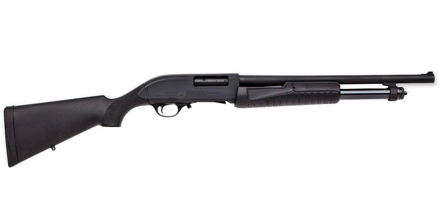 Escort AimGuard Home Defense Shotguns are the long-standing workhorses of the Escort Home Defense line. These shotguns feature a rifle-style front sight on an 18 inch, cylinder bore barrel. The AimGuard comes with a black synthetic stock and matte black metal finish. These pumps both have short stroke actions for quick repeat shots over a 5 round tube magazine, and have large, easy to find slide releases ahead of their trigger guard. Their short barrels make them ideal for tight spots and easy handling. The AimGuard comes with sling swivel studs and a dovetailed receiver for mounting accessory sights.