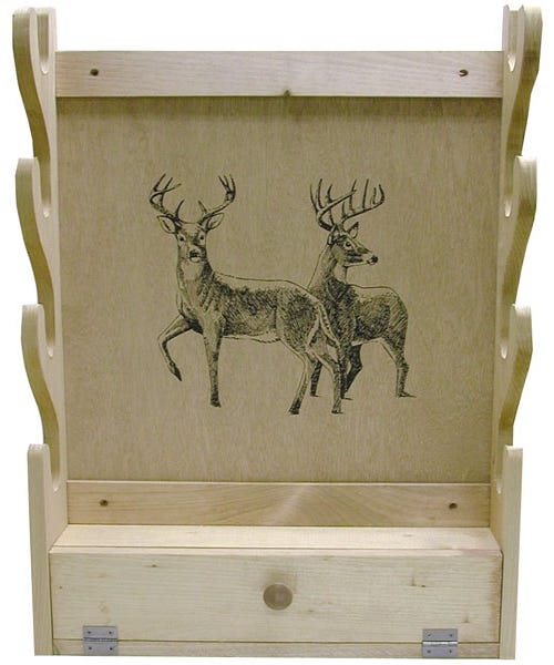 • Solid native pine• Rugged hardware• Finger-joint construction• Holds 4 long guns• Deer