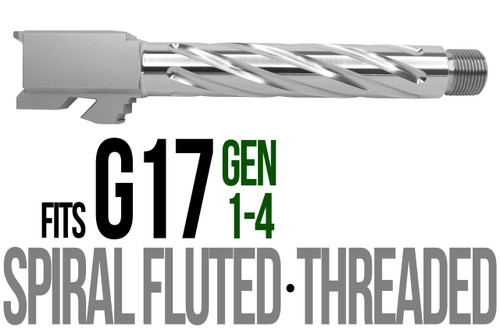Order your Fits Glock 19 9mm Match Thick Spiral Fluted Barrel Threaded Naked Stainless Steel today from California Gun Shop.