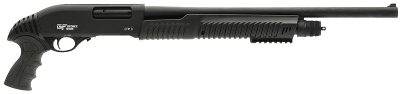 The GFP3REX from Gforce Arms stands out for its ergonomic and functional design. With a pump-action mechanism, shooters are assured of consistent cycling and reduced chances of malfunction. The shotgun comes equipped with a fixed blade front sight, ensuring rapid target acquisition in various lighting conditions. Its barrel, made of durable materials and finished in black, promises longevity and resistance to wear.