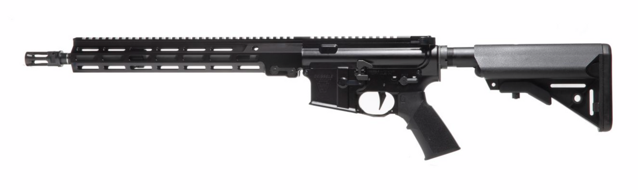 The Super Duty Rifle features the latest in weapon technology available exclusively from Geissele Automatics. This 14.5” rifle chambered in 5.56mm features a Nanoweapon coated Surefire Closed-Tine Warcomp mounted to an in-house 14.5” Mag Phosphated Cold Hammer Forge, Chrome Lined, 1-7 twist Geissele barrel. Our barrels are precision machined and cold hammer forged utilizing the highest quality materials at our state of the art facility in North Wales, PA. The Mid-length gas system and Geissele Super Compact Gas Block (with bomb-proof installation) ensures reliability and optimal performance in extreme conditions and heavy use.