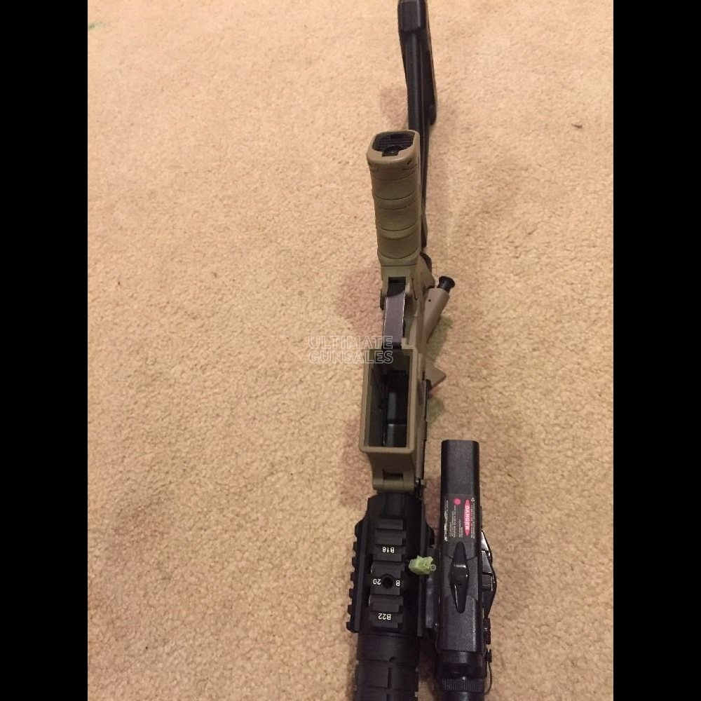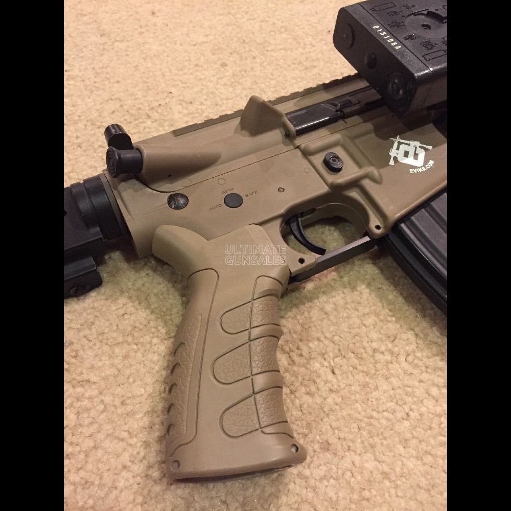 -AEG Shoots perfectly, comes with ONE hi-cap mag. -AEG and mag may show signs of wear/ use. See pictures for details. -Features Patriot Mod Free Float Kit -Folding Metal Stock For CQB -Front Wired Battery With Battery Box -Custom Pistol Grip