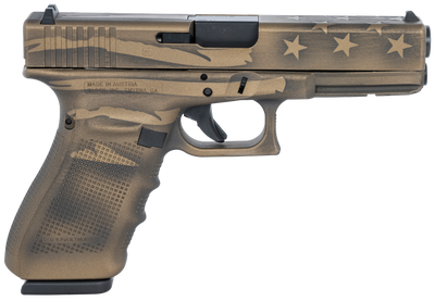The Glock 20 Gen4 delivers superior performance and accuracy in a lightweight, durable, and reliable handgun design. It comes chambered in 10mm with a 4.61 inch barrel. Features include interchangeable backstraps, fixed sights, and three 15 round magazines. Get the Glock 20 for sale and other handguns online from GrabAGun today!Glock 20 Gen4 Features The GLOCK 20 Gen4 delivers formidable force downrange with high accuracy over long distance. The use of GLOCK hi-tech polymer considerably reduces felt recoil even in this heavy caliber. For the hunting community this 10 mm Auto is a reliable companion providing a safe and accurate finishing shot, even when hunting big game. The Modular back strap system makes it possible to instantly customize its grip to accommodate any hand size. The reversible magazine catch makes it ideal for left and right-handed shooters. Glock 20 Gen4 Specifications Caliber: 10mm Auto Model: G20 Series: Gen4 Frame Finish: Black / Coyote Battle Worn Flag Cerakote Action: DAO Slide Description: Black / Coyote Battle Worn Flag Cerakote Steel Capacity: 15+1 Magazine Type: OEM Frame Material: Polymer Grips: Black / Coyote Battle Worn Flag Rough Textured Interchangeable Backstraps Hand: Right Includes: Mag Loader, 3 Mags, Cleaning Set, Pistol Case, Backstrap Set, Cable Lock OAL: 8.07″ Safety: Trigger, Firing Pin, Drop Weight: 39.86 oz Barrel Length: 4.61″