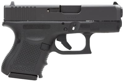 The Glock 33 Gen 4 pistol is perfect for concealed carry. This pistol is chambered in 357 Sig, is double action only, and comes with three 9-round magazines. Finished in black, this handgun also has a 3.43-inch barrel, a mag loader, cleaning set, and pistol case. Get the best deals on Glock pistols for sale from GrabAGun today!Glock 33 Gen 4 Features The Glock 33 has high muzzle velocity and energy, all packed in a user-friendly subcompact. It features Glock’s Safe Action system which provides a consistent trigger pull from the first to the last round. The three automatic independently operating mechanical safeties are built into the fire control system of the pistol. All three safeties disengage sequentially as the trigger is pulled and automatically reengage when the trigger is released. The frame is made of polymer with hardened steel guides. It features an ideal grip angle and low weight. The slide stop lever and the magazine catch are easily operated with the shooting hand. The advanced surface treatment of the slide results in optimal hardness by considerably reducing wear and tear and it makes it corrosion resistant, even when operating in saltwater conditions. The matte surface minimizes light reflection. The barrel is mechanically locked and cold-hammer forged. It also has the same advanced surface treatment as the slide. Its extractor serves as a loaded chamber indicator to comply with the laws of certain states and its position may visually and physically indicate whether there is a cartridge in the chamber of the pistol. Glock 33 Gen 4 Specifications Brand: Glock Caliber: 357 Sig Model: 33 Gen 4 Subcompact Frame Finish: Black Action: DAO Slide Description: Serrated Matte Black Steel Slide Finish: Matte Black Slide Material: Steel Capacity: 9+1 Magazine Type: OEM Frame Description: Black Polymer Frame Material: Polymer Grips: Finger Grooved Black Rough Texture Polymer Includes: Mag Loader / 3 Mags / Cleaning Set / Pistol Case / Backstrap Set / Cable Lock OAL: 6.42″ Safety: Trigger, Firing Pin, Drop Sight Style: Fixed Barrel Length: 3.43″