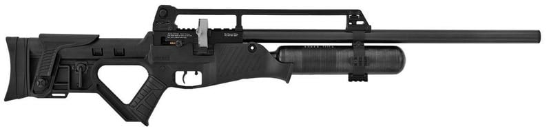 The Hatsan Blitz PCP Full Auto Air Rifle features select-fire action; semi-auto or full-auto fire. the barrel is 23″ long, fully shrouded, precision rifled, and choked. Includes advanced polymer construction, pistol grip, elevation adjustable comb, adjustable butt pad, and three fore stock accessory rails. Great safety features can also be found on the Blitz including the patented anti-knock system to prevent discharge when a rifle is knocked or bounced, a built-in pressure gauge to monitor cylinder pressure, and manual safety. Hatsan PCP air rifles are designed specifically for use with dry compressed air.