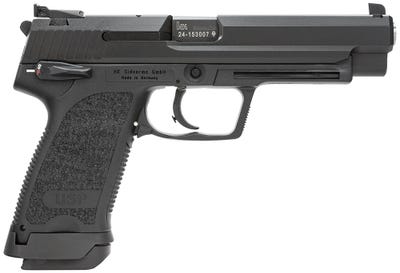The H&K USP9 Expert V1 delivers high performance and accuracy on a rugged and ergonomic design. It comes chambered in 9mm with a 5.2 inch barrel. Features include a manual safety, fixed sights, and a 15 round magazine. Get yours today at the best price online from GrabAGun!USP9 Expert V1 Features All USP’s use a fiber-reinforced polymer frame stiffened by stainless steel inserts at areas subject to stress and friction. HK pioneered this use of polymer materials in the production of handguns more than 30 years ago with the development of the VP70Z and P9S pistols. The USP control lever, a combination safety and decocking lever, is frame mounted and quickly accessible, unlike the slide-mounted safeties common on many semi-automatic pistols. Using a modified Browning-type action with a special patented recoil reduction system, the USP recoil reduction system reduces recoil effects on pistol components and also lowers the recoil forces felt by the shooter. This same recoil reduction system has been tested and proven in the HK Mark 23 pistol developed for the U.S. Special Operations Command. The USP recoil reduction system is insensitive to ammunition types and requires no special adjustment or maintenance. It functions effectively in all USP models. Variant 1 is a double action/single action with “SAFE” position. Control lever (manual safety/decoking lever) on left side of frame. USP9 Expert V1 Specifications Caliber: 9mm Luger Model: USP9 Series: Expert V1 Frame Finish: Black Action: SA / DA Slide Description: Black Capacity: 15+1 Case Type: Hard Frame Material: Polymer Grips: Black Polymer Hand: Right OAL: 7.68″ Safety: Manual Sight Configuration: Fixed Sight Style: Fixed Weight: 25 oz Barrel Description: Polygonal Rifling Barrel Length: 5.2″