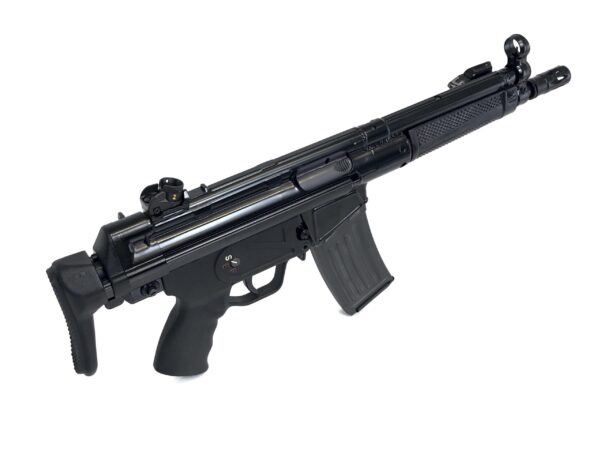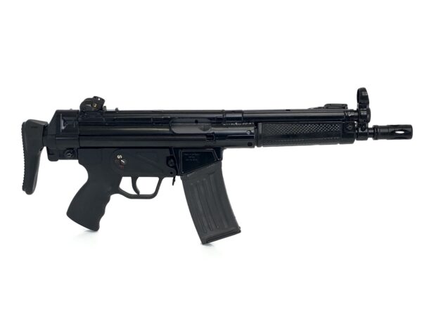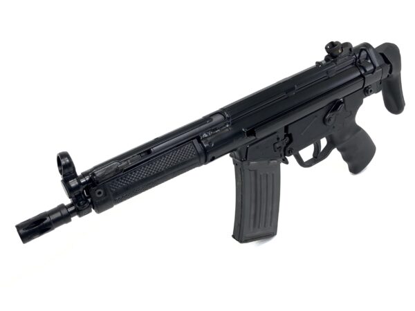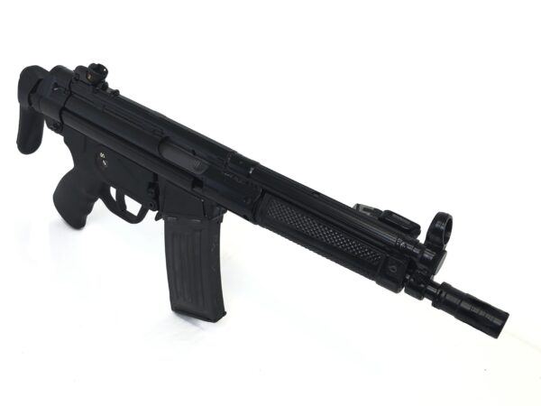 This SBR features an HK53 correct 8.3″ length barrel, a Heckler & Koch A3 retractable stock, and has been correctly remarked to read HK 53 as the model. The trigger housing is an SEF marked grip in semi-auto only, however, this model has also had its bolt carrier group upgraded to be completely sear-ready for select-fire with your transferable registered machine gun sear pack.