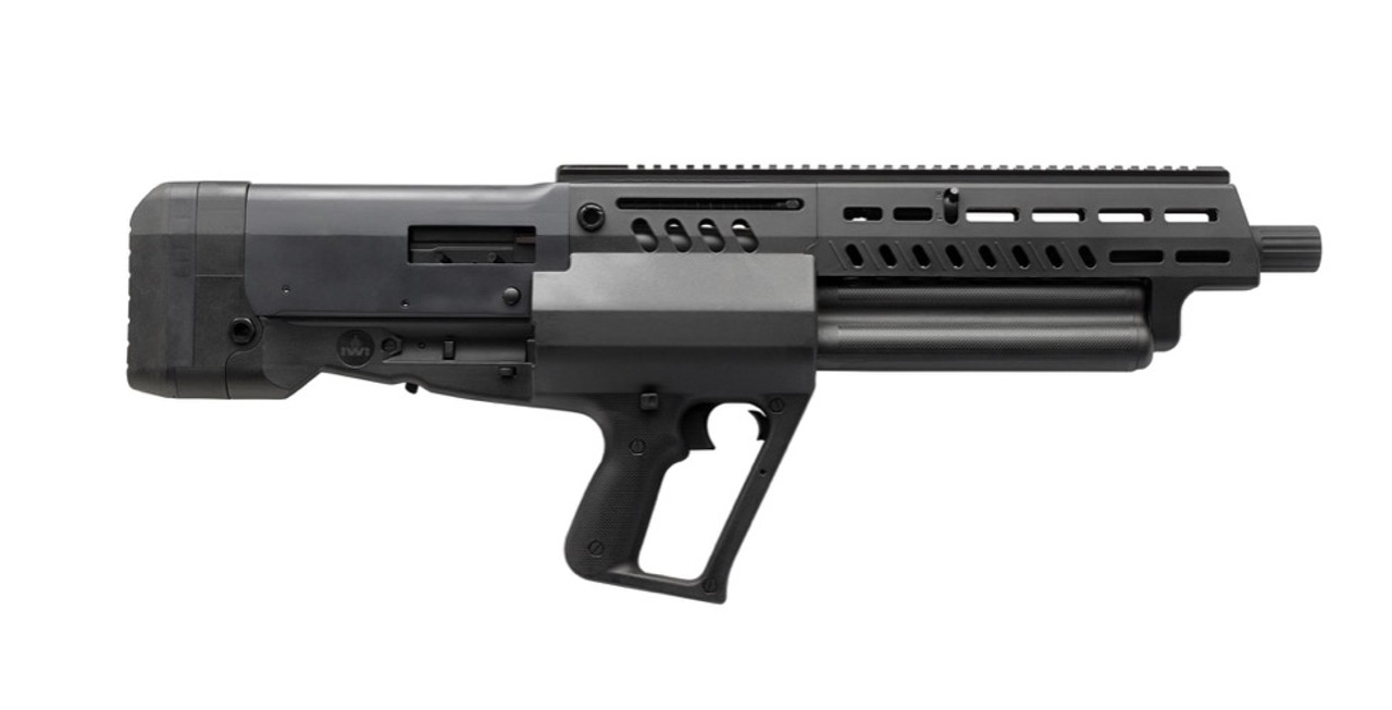 The Tavor TS12 12 gauge shotgun is a gas regulated bullpup shotgun with an innovative design that feeds from one of three (3) individual magazines which can hold four 3 inch shotgun shells or five 2 ¾ inch shotgun shells each. This means that the potential overall capacity from all three (3) individual magazines is 15 rounds plus one additional round in the chamber. The TS12 has a unique feature that automatically loads a round in the chamber once the subsequent loaded magazine is rotated into position. It can be fed and unloaded from either side.