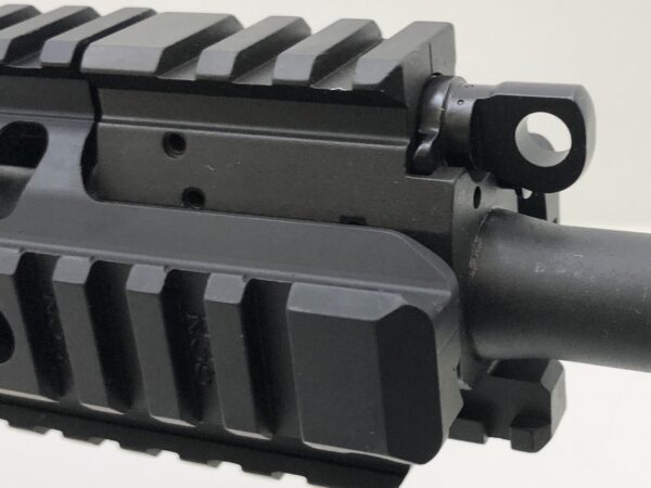 This weapon starts out with a made-just-for-us Keystone Arms KE-15 lower receiver featuring the Chester County Armory logo on the right side of the mag well, and then serial numbered using our company initials! The lower is made from forged 7075 T6 aluminum with a type 3 hard coat anodizing. It is then finished off with a mil-spec fire control group, A2 pistol grip, and a collapsible carbine stock with a carbine buffer and spring.