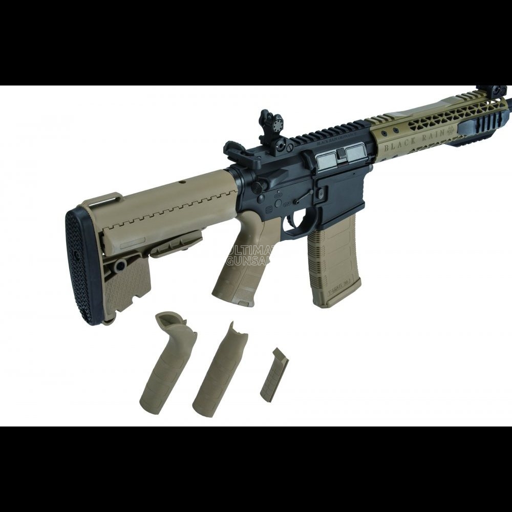Longer than its original, the Fallout 15 Urban version includes a quick spring change system in the gearbox, and has trigger serrations.This specialty rifle has an adjustable hop up and and crane stock that tailors to the player’s preference. Also, the in
